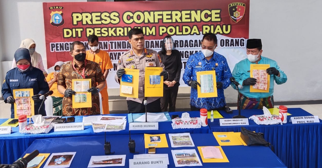 Kepala bidang (Kabid) Humas Polda Riau, Kombes Pol Sunarto dalam konferensi persnya memaparkan komplotan itu berhasil diringkus usai pada 15 Mei 2022, petugas mengamankan satu kapal pompong dan dua Speedboat yang hendak digunakan untuk melansir para pekerja migran.