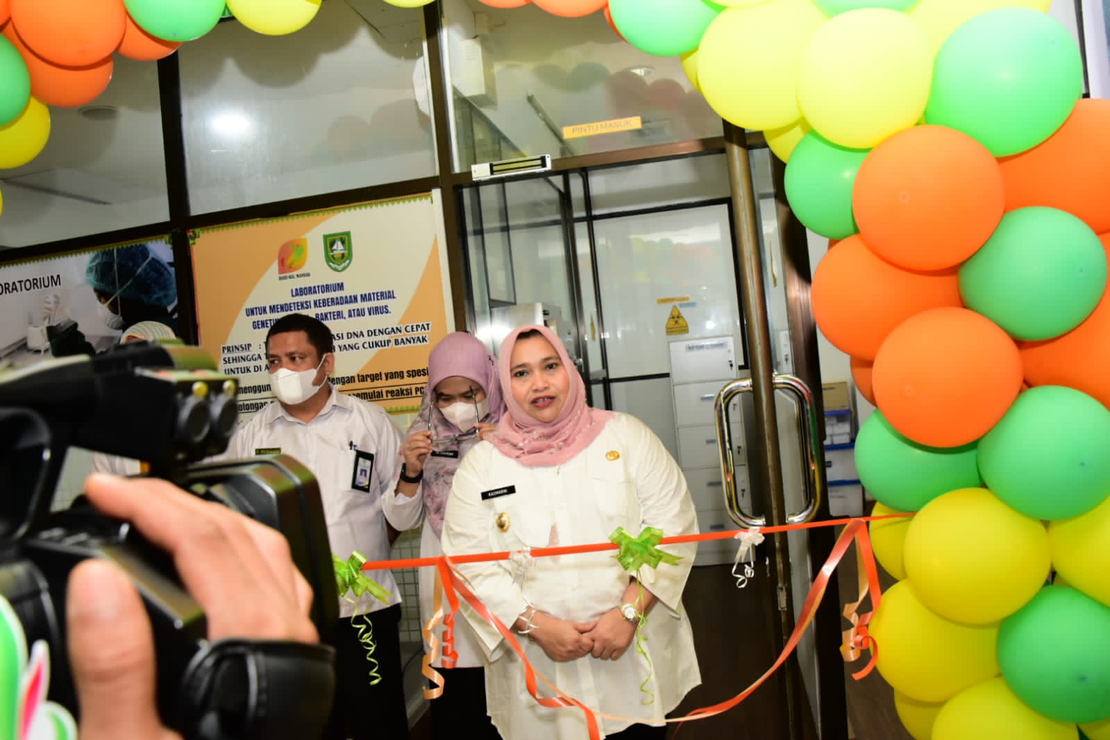 Usai pengguntingan pita, Bupati Kasmarni dan rombongan langsung meninjau labor PCR yang terletak di lantai tiga tersebut dan tempat pengambilan sampel yang berada di lantai dasar bagian luar RSUD.