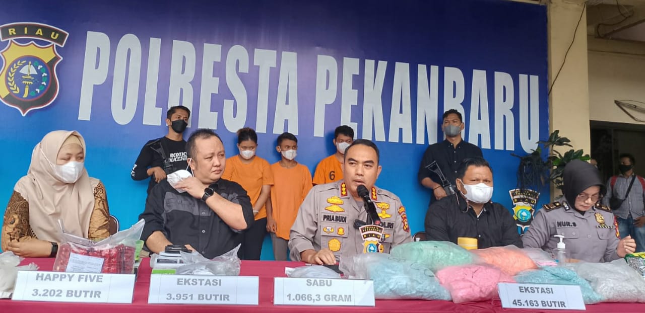 Jagariau – PEKANBARU – Genderang perang akan Narkotik dan Obat obatan terlarang (Narkoba) terus ditabuh jajaran Polisi Resort Kota (Polresta) Pekanbaru. Buktinya, Jum’at (16/6/22), salah satu Pasang suami istri (Pasutri) yang mendiami kamar kos kosan di Jalan Karya, Kecamatan Bukit Raya, berhasil diamankan dikarenakan memiliki Narkoba jenis Shabu seberat 1 Kilogram dan Pil ekstasi jenis Happy Five sebanyak 3.202 butir.
