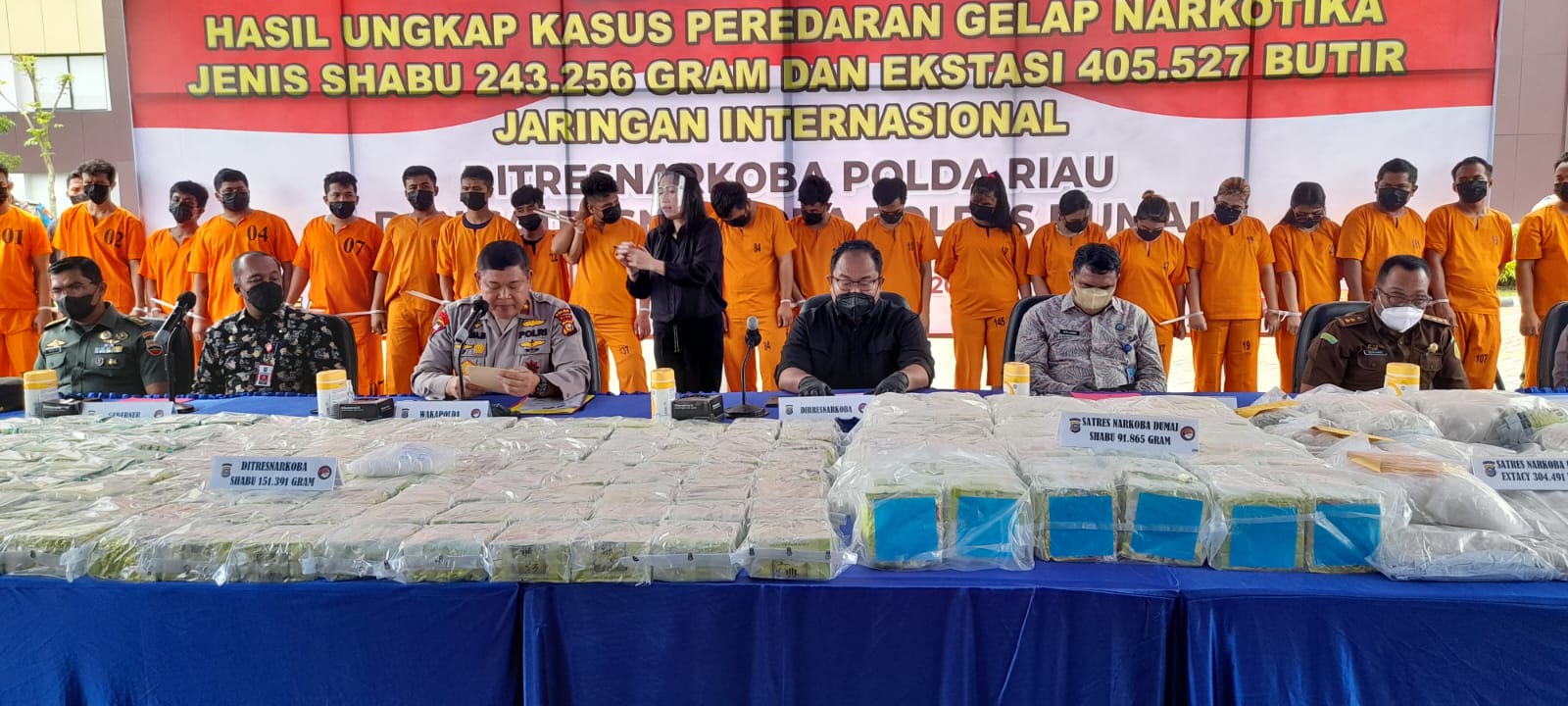 Milik Jaringan Internasional, Polda Riau Musnahkan 243 Kilogram Shabu dan 405.527 Butir Ekstasi