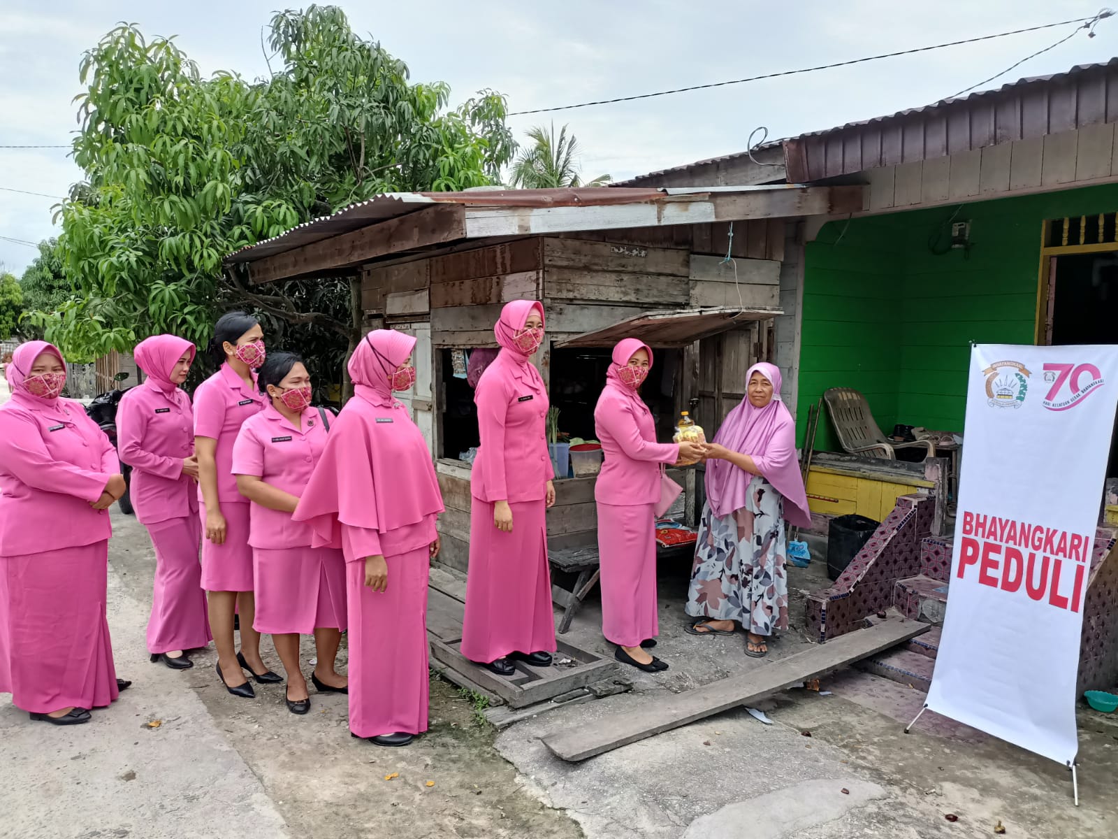 Door to door memburu masyarakat kurang mampu, Sabtu (1/10/22) pagi jelang tengah hari bareng ranting Bhayangkari seakan tak kenal lelah.