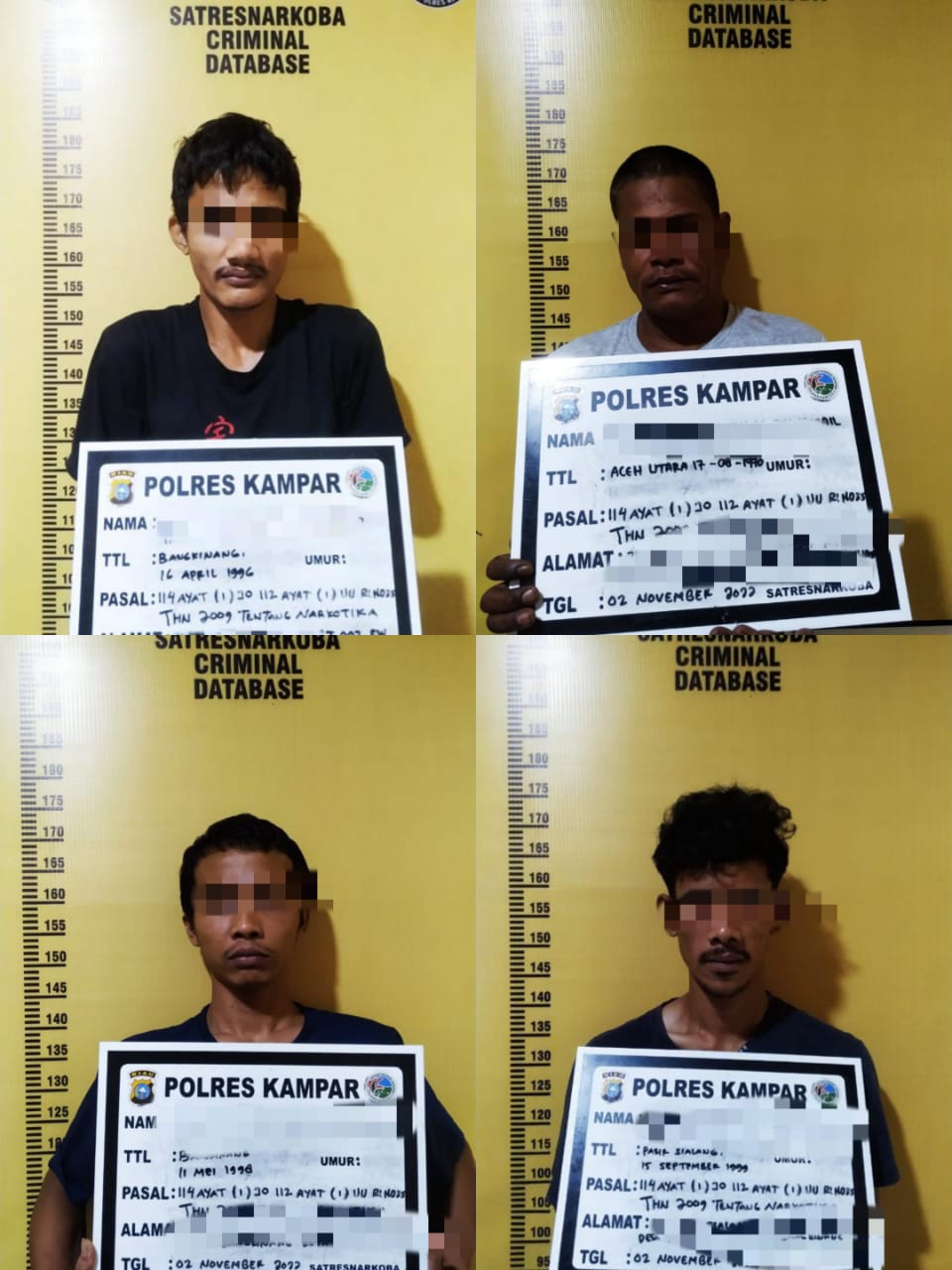 Kapolres Kampar, AKBP Didik Priyo Sambodo melalui Kasat Narkoba Polres Kampar AKP Aprinaldi membenarkan penangkapan keempat pelaku.”Benar keempat pelaku dan barang bukti telah kita amankan ke Polres Kampar untuk penyidikan lebih lanjut,”jelasnya.