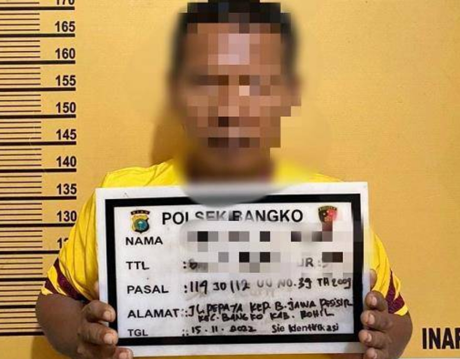 H diamankan Polsek Bangko diteras rumah kakaknya di Jalan Pepaya, Kepenghuluan Bagan Jawa, Kecamatan Bangko, Kabupaten Rohil, Selasa (15/11/22) sekira pukul 13.30 WIB