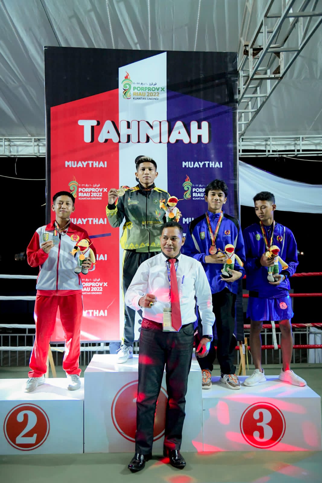 Jagariau – KUANSING – Sejumlah Cabang Olahraga (Cabor) yang dipertandingkan di Pekan Olahraga Provinsi (Porprov) X Riau di Kuantan Singingi (Kuansing) sudah diujung. Salah satunya Cabor Muaythai. Dari Cabor bela diri ini, Kontingen Negeri berjuluk Sri Junjungan Bengkalis ini sukses merebut 6 medali emas, 4 perak dan 7 perunggu, Jum’at (18/11/22).