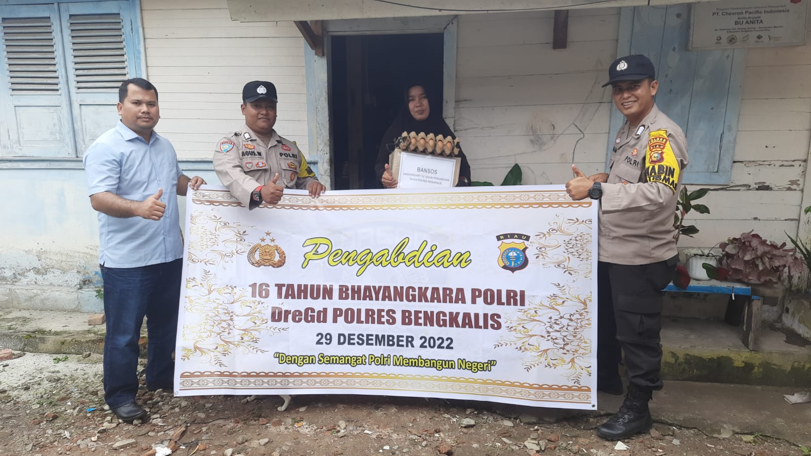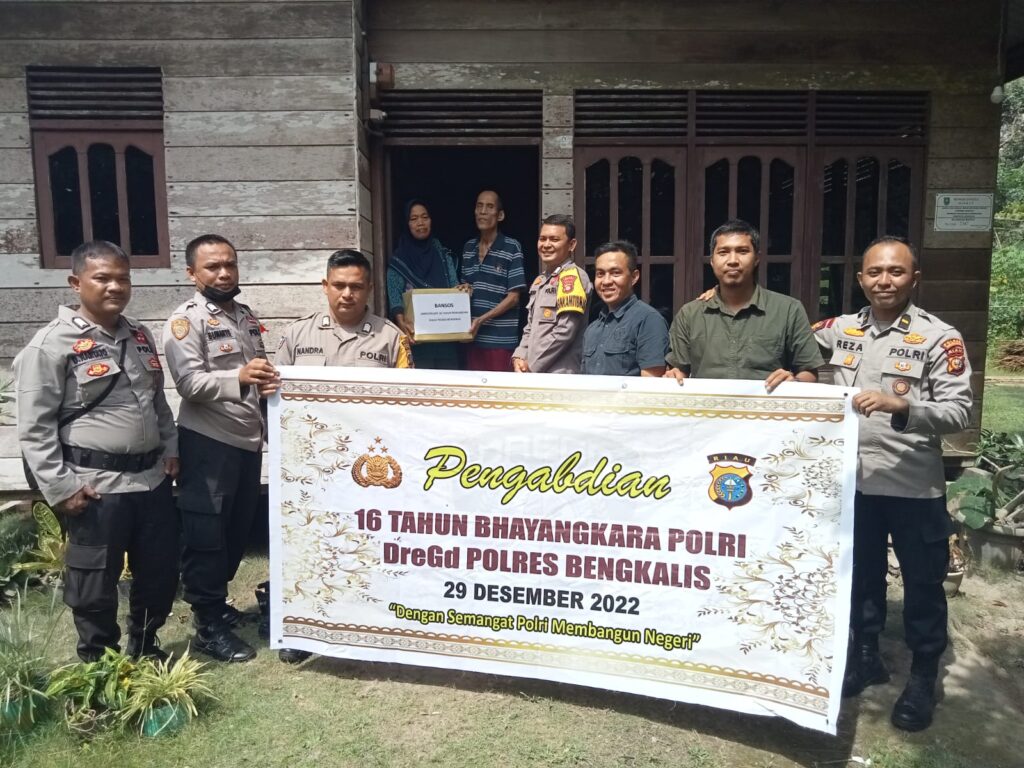 Jagariau – BENGKALIS – Wujud syukur pada usia 16 tahun mengabdi di Kepolisian Republik Indonesia (Polri), Personil Polres Bengkalis, Polda Riau Angkatan 29/DREGD (Dua Ribu Enam Gelombang Dua) memperingatinya dengan menggelar Bakhti Sosial (Baksos) dengan menyalurkan Bantuan Sosial (Bansos) yang menyasar ke kaum Dhuafa dan Disabilitas di Kabupaten Bengkalis, Kamis (29/11/22).