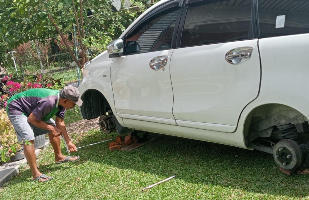 Nasib apes itu dialami Purwadi (69) warga Jalan Jendral Sudirman, RT 01, RW 01, Desa Pakning. Ban Mobil Toyota Avanza miliknya hanya tersisa satu dari empat sebelumnya dengan kondisi janggal, ketiga ban yang dicuri akhirnya tampak diganjal batu bata agar kondisi mobil tidak mencurigakan pemiliknya.