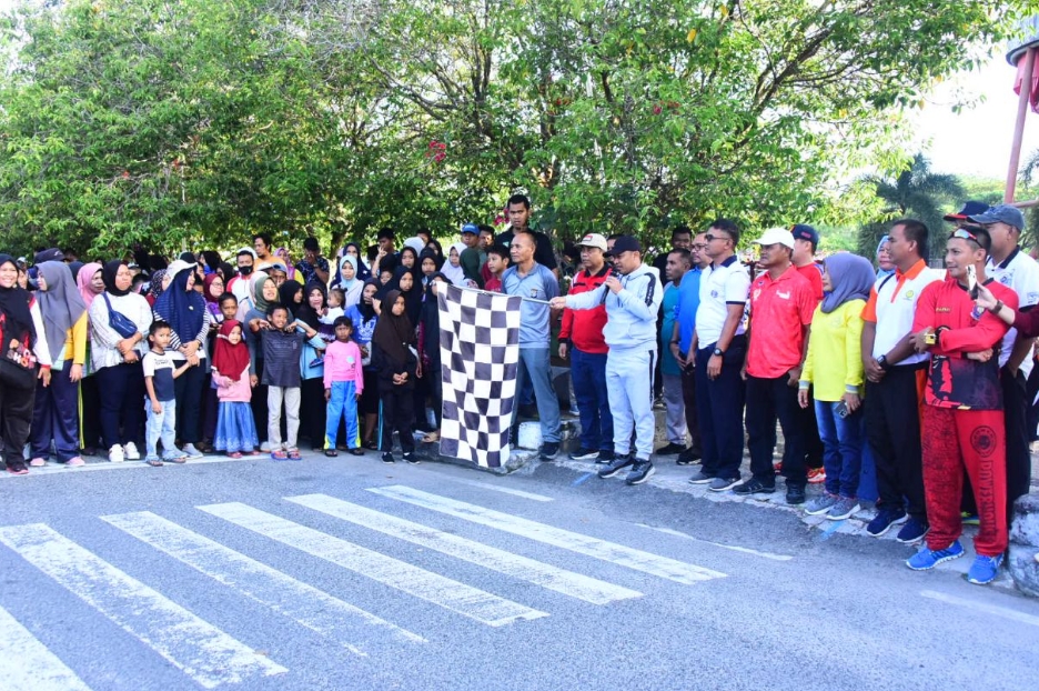 Pantauan dilapangan, ribuan masyarakat tumpah dipusat Kota terubuk itu dengan menempuh rute berjalan santai mengitari Jalan Jenderal Sudirman, Hos Cokroaminoto, Hang Tuah dan Pattimura.