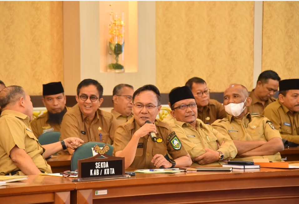 Rapat tersebut tampak dipimpin Asisten I Sekretariat Daerah Provinsi Riau Masrul Kasmy, diikuti seluruh Sekretaris Daerah Kabupaten dan Kota se-Provinsi Riau, Ketua KPU, Ketua Bawaslu dan Kepala Kesbangpol se-Provinsi Riau.