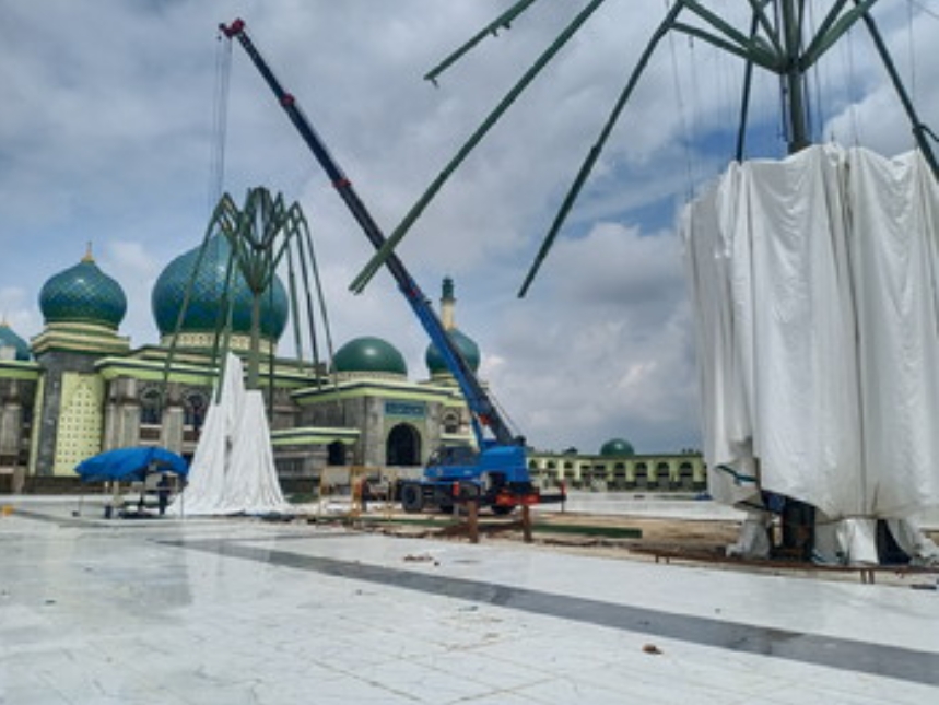Jagariau – PEKANBARU – Niat besar masyarakat dalam melaksanakan Sholat Ied dihalaman Masjid kebanggan masyarakat Pekanbaru itu tampak hanya isapan jempol. Pasalnya, Proyek payung Elektrik yang diharapkan berfungsi sebagai pelindung jemaah dari panas tak kunjung rampung.