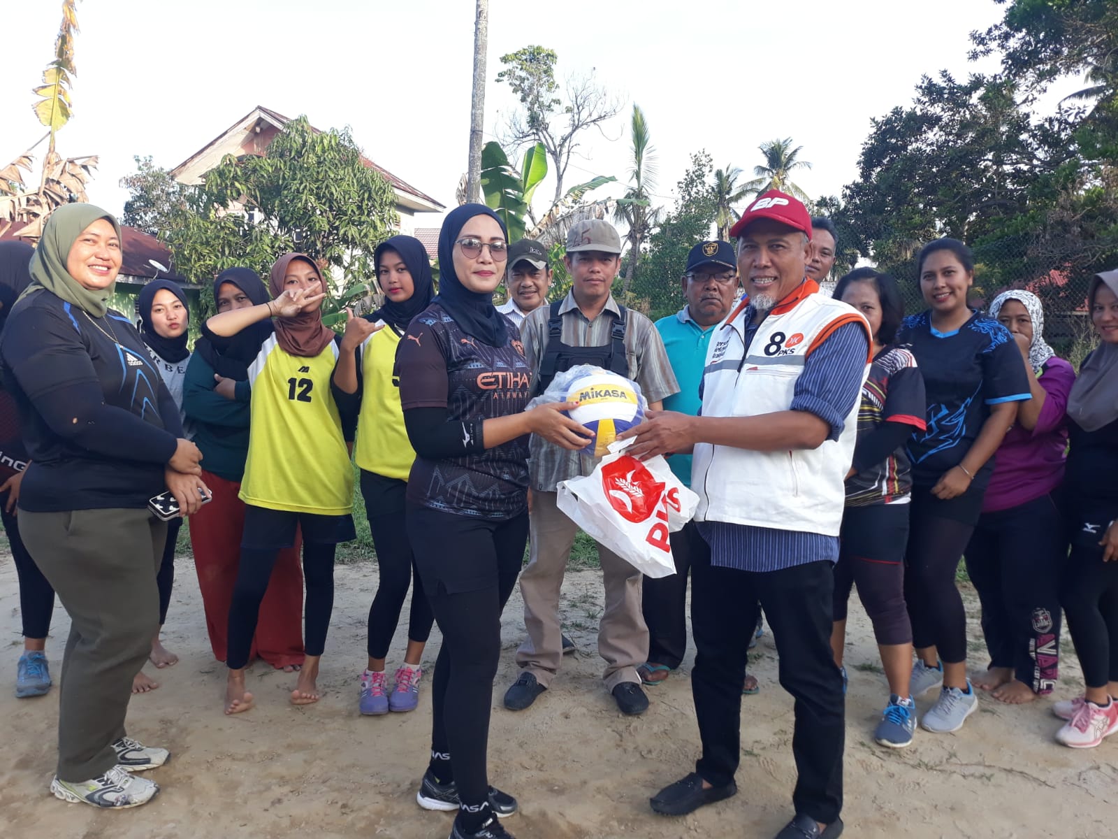 Jagariau – DURI – Kepedulian H Misno dalam mendengar panggilan suara masyarakat kembali ditunjukkan dengan menyalurkan alat olahraga Bola Volly, Senin (5/6/23) petang.