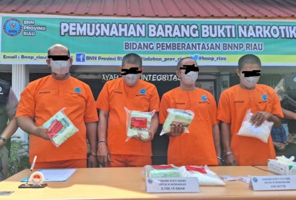 Jagariau – PEKANBARU – Kerja keras Badan Narkotika Nasional Provinsi (BNNP) Riau akhirnya membuahkan hasil manis. Sedikitnya 5,89 Kilogram Shabu dan 489 butir pil ekstasi berhasil disita dan dimusnahkan. Selain itu, empat orang pelakunya juga sukses diborgol.