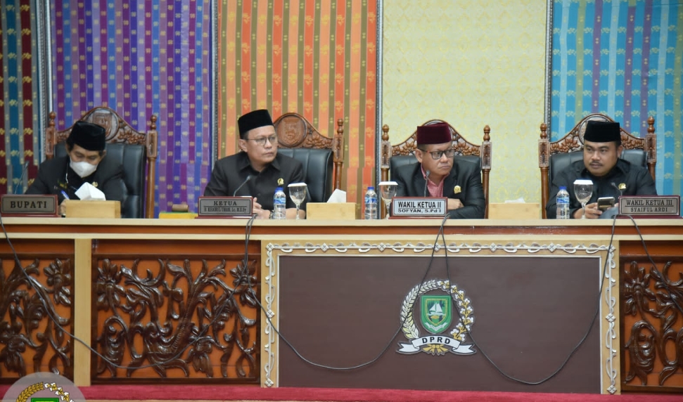 Paripurna tersebut dihadiri Bupati Bengkalis diwakili Asisten III Bidang Administrasi Umum, Aulia, Wakil Ketua II, Sofyan, Wakil Ketua III, Syaiful Ardi, anggota DPRD serta Kepala OPD di ruang lingkup Pemerintah berjuluk Sri Junjungan.