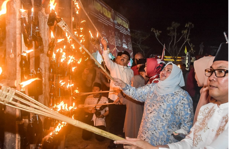 Pembukaan itu ditandai dengan menyalakan lampu colok oleh Bupati perempuan pertama di Riau itu yang dipusatkan di Jalan Stadion, Kelurahan Air Jamban.