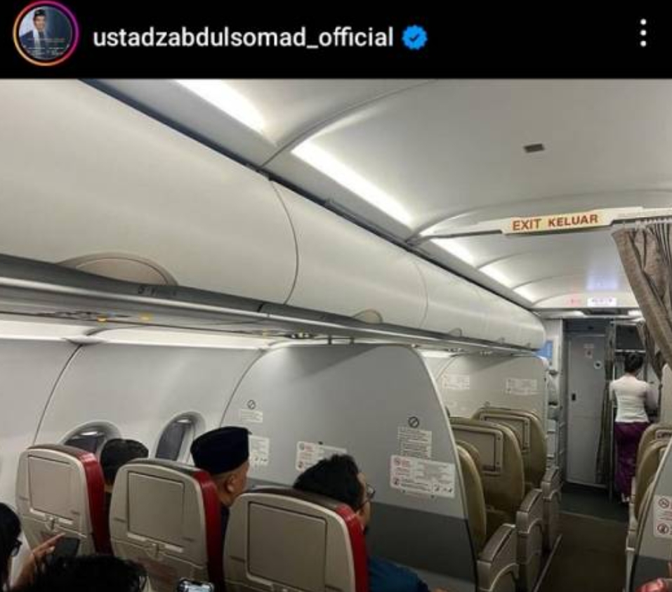 UAS juga memposting foto suasana di dalam kabin pesawat yang menunjukkan posisi kursi duduk UAH. “Masya Allah”.(Nov/Ckp)
