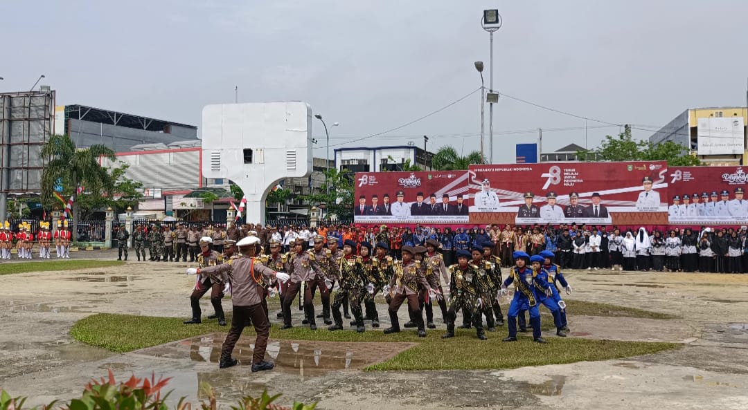 Jagariau – DURI – Aksi Polisi Cilik terus mendapat aplous yang tampil memukau disetiap ivent. Kali ini tampak saat peringatan detik detik Proklamasi Kemerdekaan Republik Indonesia Ke – 78 dihalaman Kantor Kecamatan Mandau, Kamis (17/8/23).