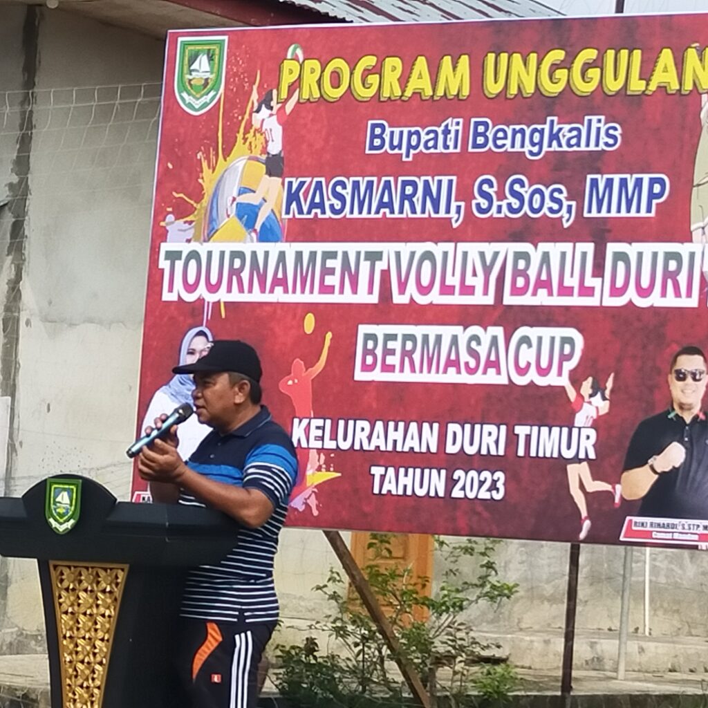 Jagariau – DURI – Sabtu (4/11/23), Volly Ball Turnamen Duri Timur digelar. Dibuka langsung Camat Mandau, Riki Rihardi, Program Unggulan Bupati perempuan pertama di Riau itu disambut antusias masyarakat.