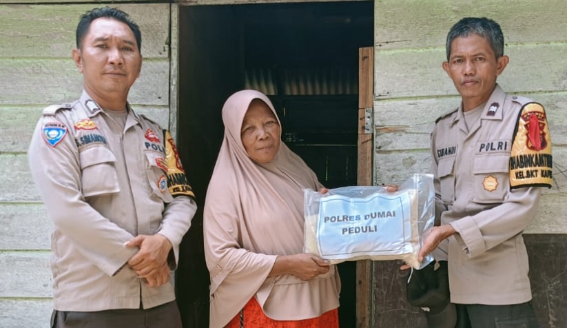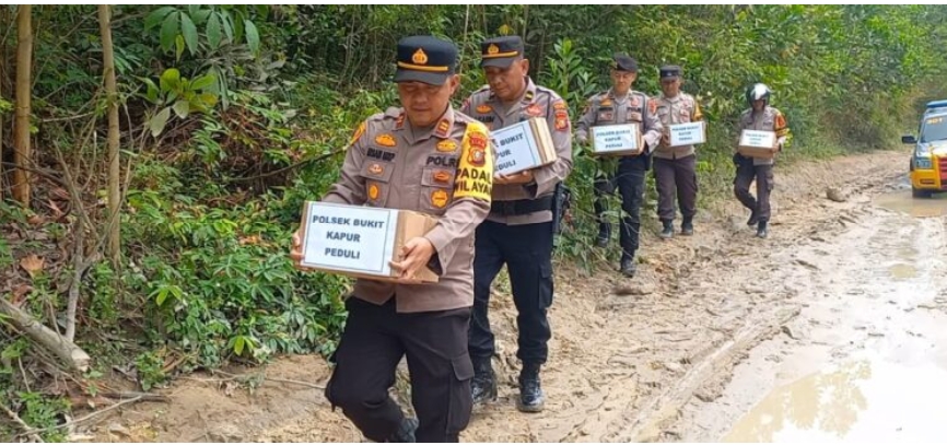 Terjang Medan Berlumpur, Polsek Bukit Kapur Salurkan Sembako Songsong Pemilu Damai 2024