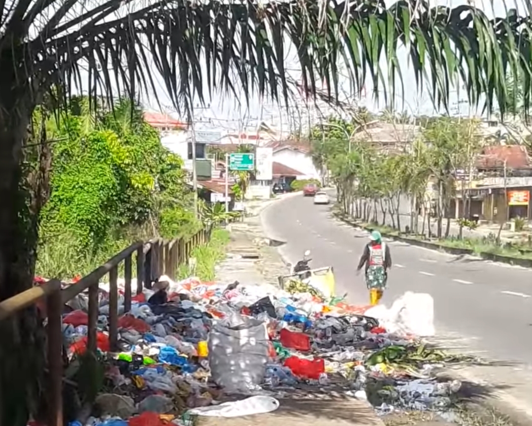 Hal tersebut tampak pada hari perdana Idul Fitri 1445 Hijriyah/2024 Masehi, Rabu (10/4/24). Tumpukan sampah rumah tangga kembali tampak dan sudah mengeluarkan aroma tidak sedap, baik dijalan Jendral Sudirman maupun di Jalan Hang Tuah.