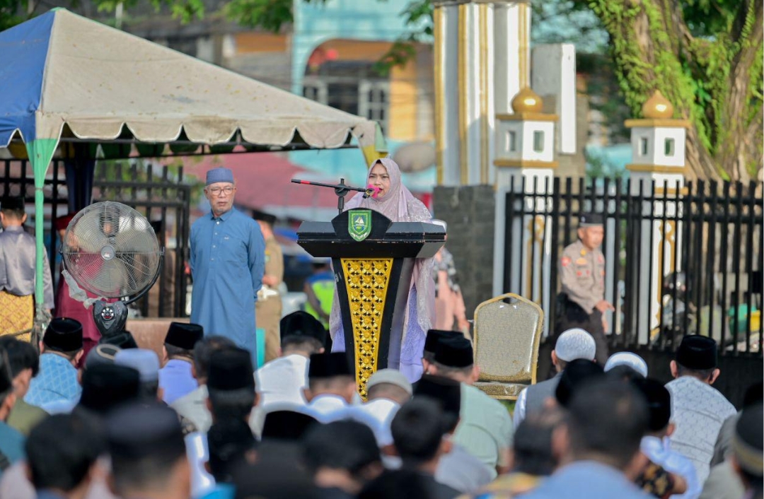 Dihadapan ribuan jama’ah yang menunaikan Shalat Ied, Kasmarni mengucap Selamat Hari Raya Idul Adha 1445 H/ 2024 M.