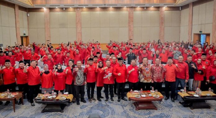 Dalam sambutannya, Hasto menekankan kepada seluruh pengurus PDI Perjuangan baik dari tingkat DPD hingga DPC untuk bersama memenangkan setiap calon yang diusung oleh Partai besutan Megawati Soekarno Putri itu.
