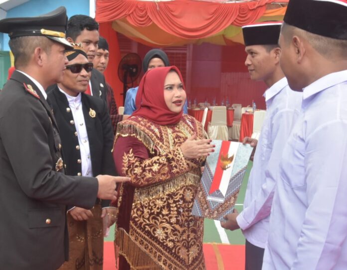 Bupati Bengkalis Kasmarni didaulat langsung menyerahkan secara simbolis keputusan remisi dalam kesempatan itu mengucapkan selamat kepada seluruh napi yang mendapat remisi dan pengurangan masa tahanan.