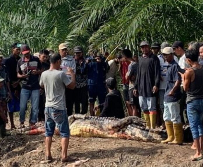 Usai mengangkat mayat korban, warga menyeret buaya ke darat. Perut buaya dewasa itu lalu dibelah dan kepala korban ditemukan di dalamnya.