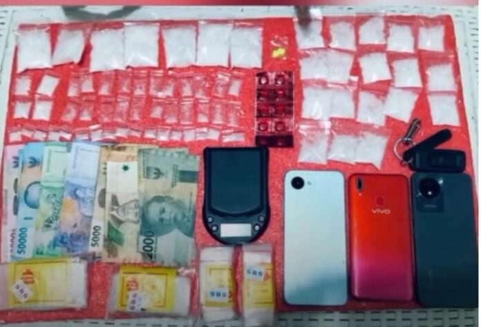 Sejumlah paket tersebut dikemas dalam plastik klep bening dan ditemukan di beberapa tempat di dalam rumah tersangka. Selain itu, juga diamankan dua unit ponsel, sepeda motor, uang tunai Rp 84.000, dan sejumlah pil ekstasi serta pil jenis Happy Five.