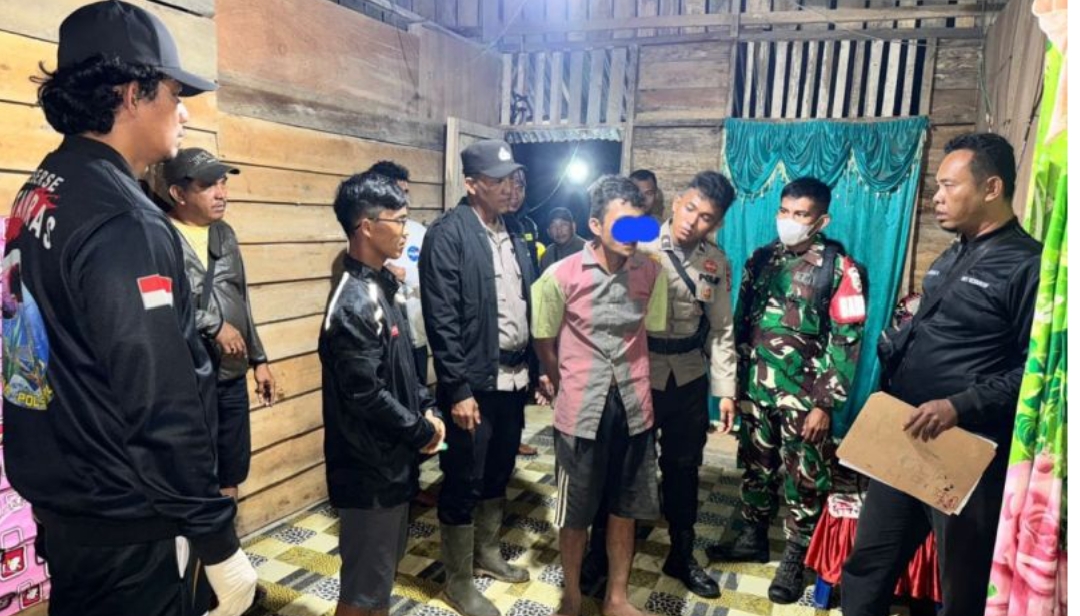 Istri pelapor sontak terbangun dan membuka jendela melihat diduga pelaku berada di dalam rumah dan mengarah keluar dengan membawa pisau yang berlumuran darah yang masih menetes di tangannya.