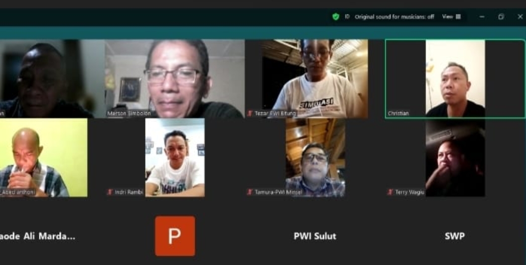 Para peserta zoom meeting yang dihadiri Ketua dan pengurus PWI 15 Kabupaten/Kota, masing masing PWI Talaud, PWI Kabupaten Kepulauan Sitaro. PWI Kabupaten Kepulauan Sangihe, Pengurus dan Ketua PWI Kota Kotamobagu, PWI Kota Bitung, PWI Kota Tomohon, PWI Kabupaten Minahasa, PWI Kab Minahasa Utara, PWI Kabupaten Mitra, PWI Kabupaten Bolaang Mongondow, PWI Kabupaten Bolaang Mongondow Utara, PWI Kabupaten Bolaang Timur, PWI Kabupaten Minahasa Selatan dan PWI Manado.