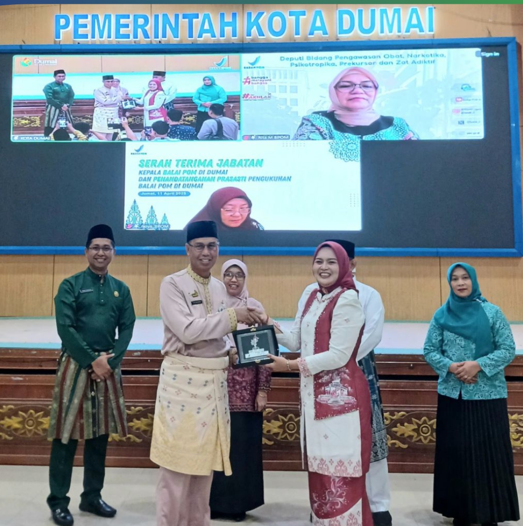 Jagariau – DUMAI – Bupati Bengkalis diwakili Asisten Perekonomian dan Pembangunan Sekretariat Daerah Kabupaten Bengkalis, H Toharuddin menghadiri kegiatan serah terima jabatan Kepala Balai POM Dumai dan Penandatanganan Prasasti Pengukuhan UPT Balai POM Dumai, di Gedung Pendopo Sri Bunga Tanjung Dumai, Jum’at (11/4/25).