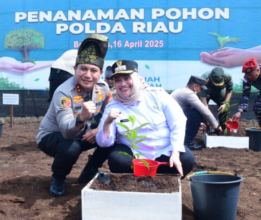 Jagariau – BENGKALIS – Rabu (16/4/25), Bupati Bengkalis, Kasmarni dan Kapolda Riau, Irjen Pol Herry Heryawan melakukan penanaman pohon Geronggang di Kampung Tangguh Polres Bengkalis, Jalan Poros Sungai Alam.