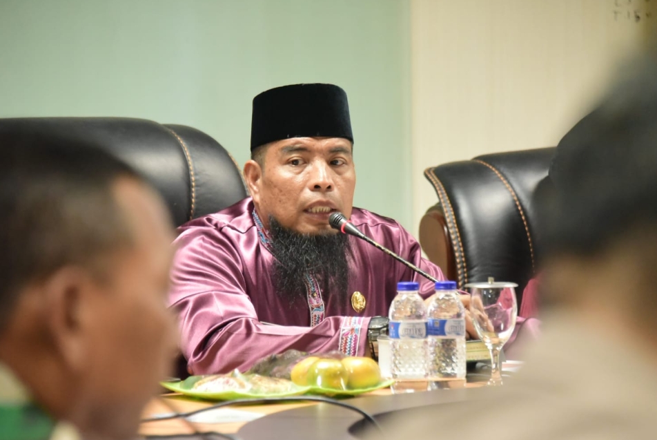 Mewakili Bupati Bengkalis, Kasmarni, Asisten Pemerintahan dan Kesejahteraan Rakyat Setda Bengkalis, Andris Wasono didampingi Asisten Administrasi Umum, Aulia, Kasubbag Tata Usaha Pimpinan dan Staf Ahli Bupati Bagian Umum Yenni Norasni tampak sigap memimpin rapat