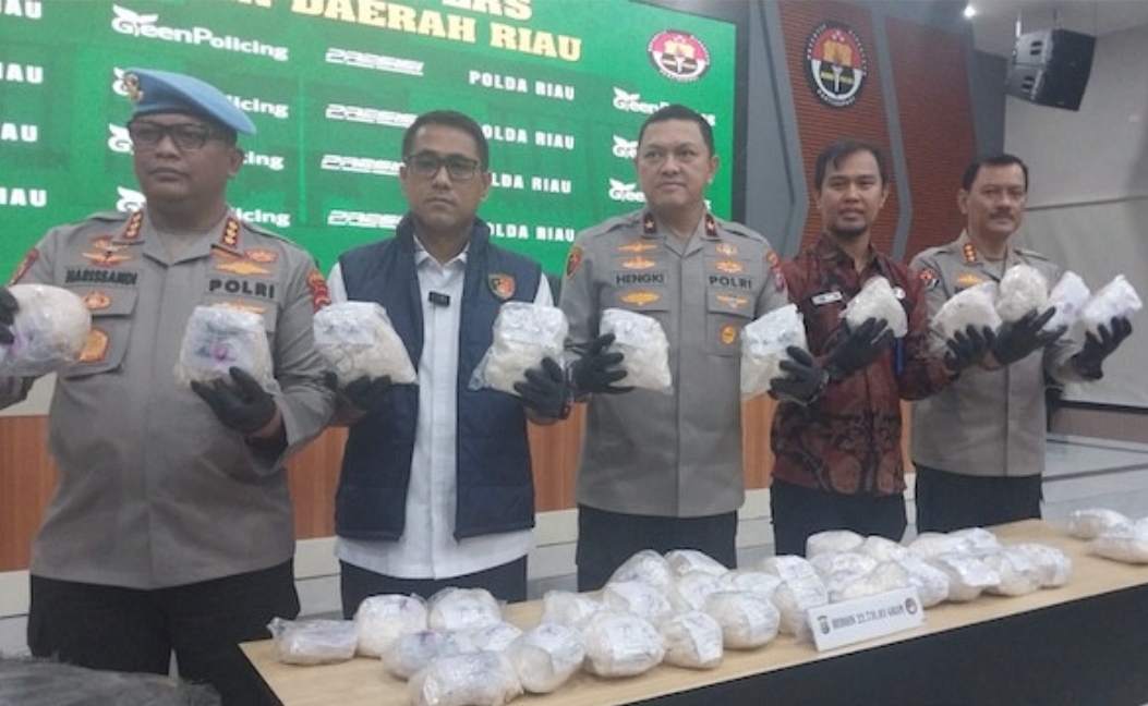Konferensi pers itu tampak dihadiri Wakapolda Riau, Brigjen Pol Hengki Haryadi, Kabid Humas Kombes Pol Zaheani Pandra Arsyad, Kabid Propam Kombes Pol Harissandi, dan perwakilan dari Badan Narkotika Nasional (BNN) Provinsi Riau.